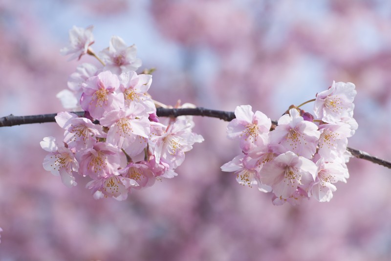 河津桜、寒緋桜、オカメ桜が満開です。